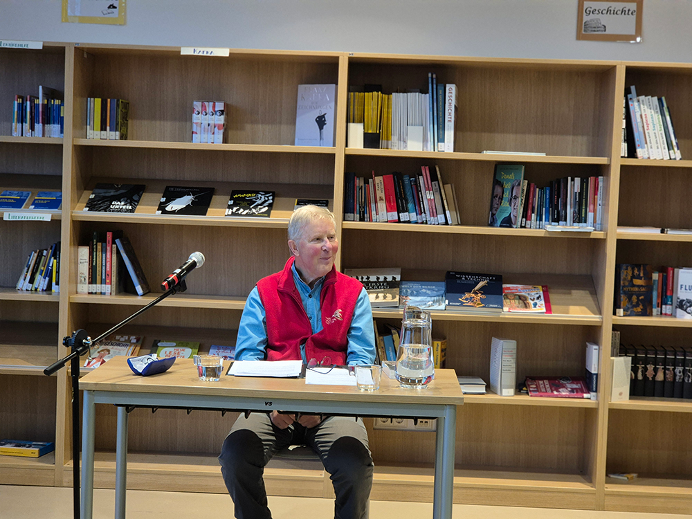 Am vergangenen Dienstag, den 2. Dezember, hatten Schülerinnen und Schüler der 11. und 12. Klassen die Gelegenheit, an der ersten Autorenlesung unserer Schule teilzunehmen. Zu Gast war der Autor Winfried Niebes, der sein Buch „Wer A sagt, sollte auch weitergehen“ vorstellte und mit uns über Erinnerungskultur, Demokratie und persönliche Lebenswege ins Gespräch kam. Sein Werk, eine romanhafte Autobiografie, verbindet zahlreiche Lebensstationen mit der politischen und gesellschaftlichen Entwicklung der Bundesrepublik Deutschland.