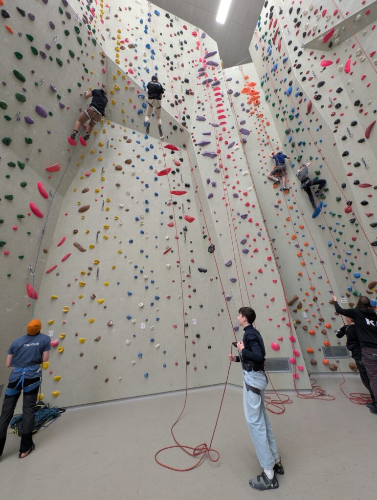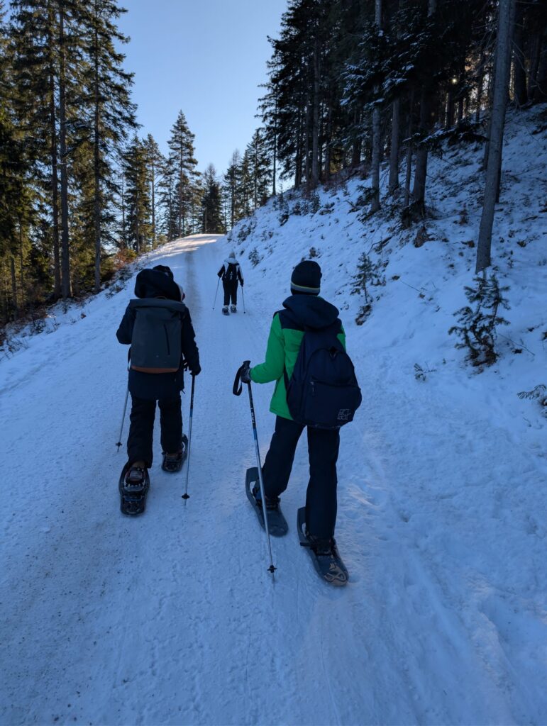 Ein Teil der Gruppe nahm am Skilager teil und lernte vor Ort unter Anleitung professioneller Skilehrerinnen und Skilehrer das Skifahren oder verbesserte bereits vorhandene Fähigkeiten. Parallel dazu erlebte die Winterlagergruppe ein abwechslungsreiches Programm abseits der Skipisten: Dazu gehörten unter anderem eine Schneeschuhwanderung durch die verschneite Landschaft, bei der die Gruppe gemeinsam unterwegs war und die winterliche Natur intensiv erleben konnte, sowie ein Ausflug nach Innsbruck mit einem Besuch in der Kletterhalle. Auch Eislaufen in Seefeld und eine spannende Actionbound-Tour durch den Ort sorgten für sportliche Herausforderungen und viel Spaß.