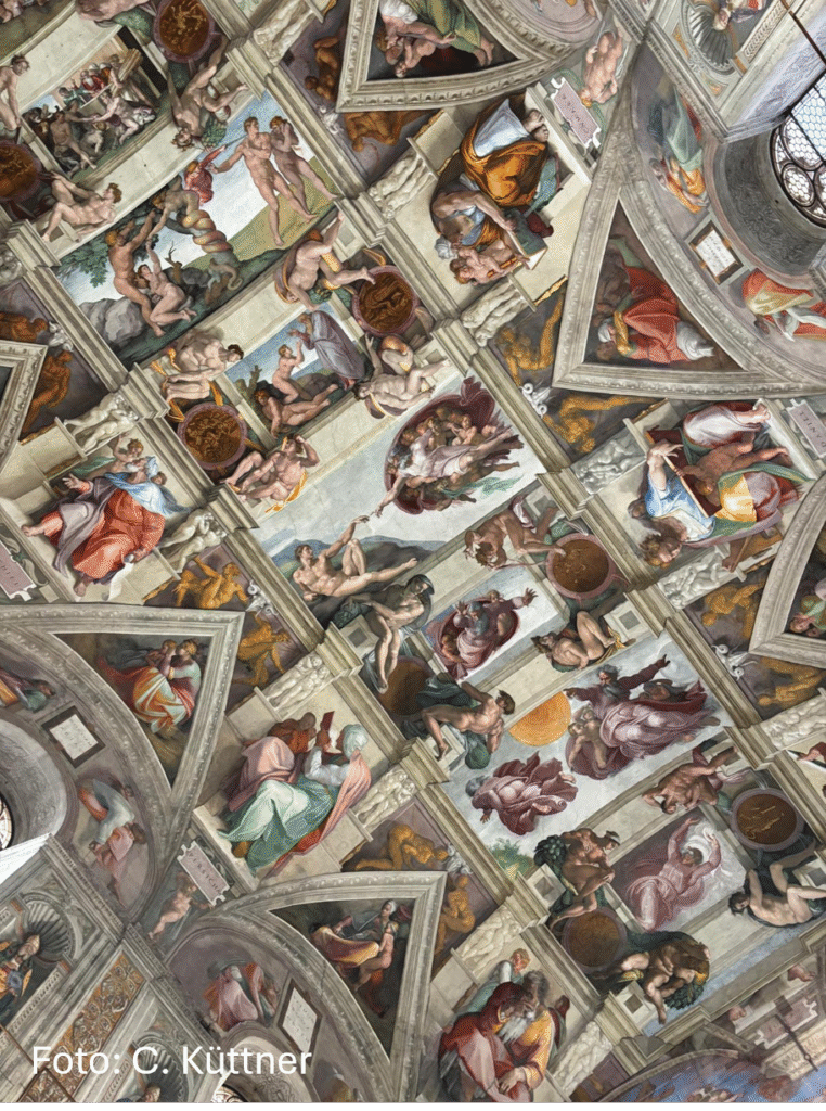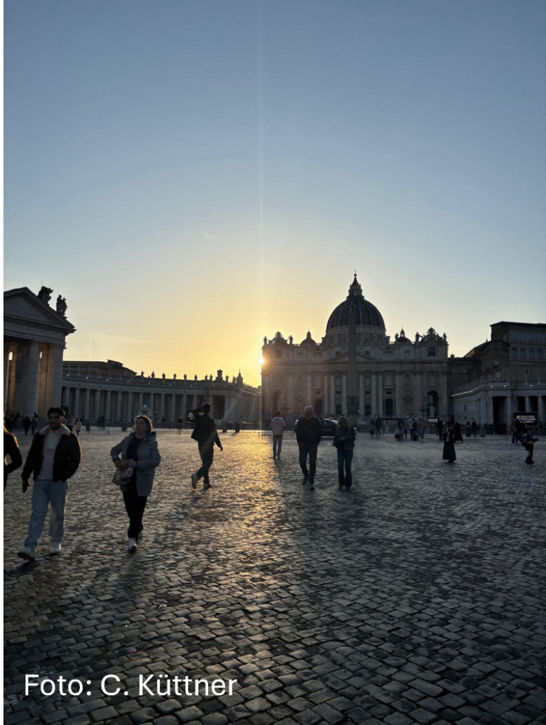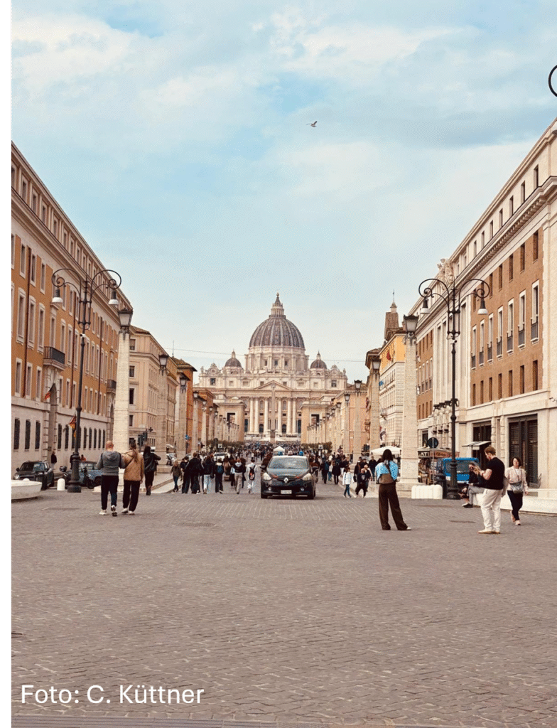 Am Mittwoch begann unser Tag um 9 Uhr mit dem Ziel zu den Vatikanischen Museen. Auf dem Weg dorthin sind wir an der Engelsburg vorbei gelaufen. In den Vatikanischen Museen sahen wir zahlreiche berühmte Kunstwerke und beeindruckende Ausstellungen. Viele von uns waren besonders von der Sixtinischen Kapelle begeistert. Anschließend besuchten wir den Petersplatz und sind in den Petersdom gegangen. Obwohl wir etwas Wartezeit hatten, hat sich der Besuch auf jeden Fall gelohnt. Der Dom war von innen noch beeindruckender als von außen. Den schönen Tag haben wir am Abend mit einem gemeinsamen Essen abgerundet.