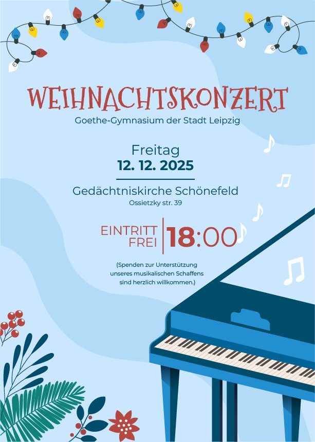 Johannes MaierDas Goethe-Gymnasium lädt herzlich zum diesjährigen Weihnachtskonzert ein. Es erwarten Sie wieder vielfältige musikalische Beiträge….